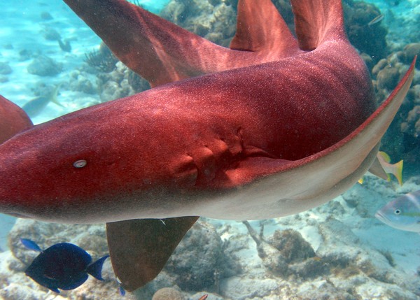 1. 烏賊餵光了,可能牠游了半天都沒有吃的就火了... 真是的,這種Nurse Shark通常很溫馴。